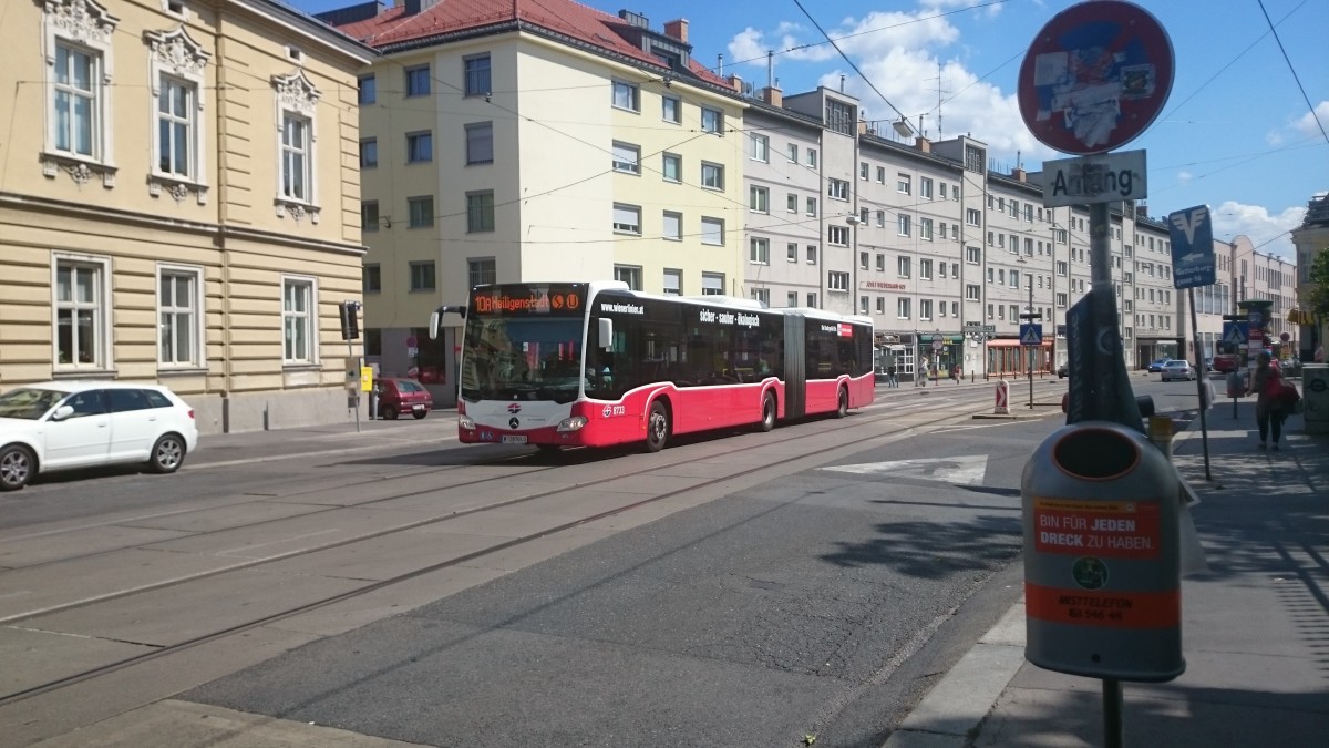 Hier zu sehen ein MB 265 von Mercedes auf der Linie 35A. Aufgenommen am 28.6.2015 in Wien, Österreich