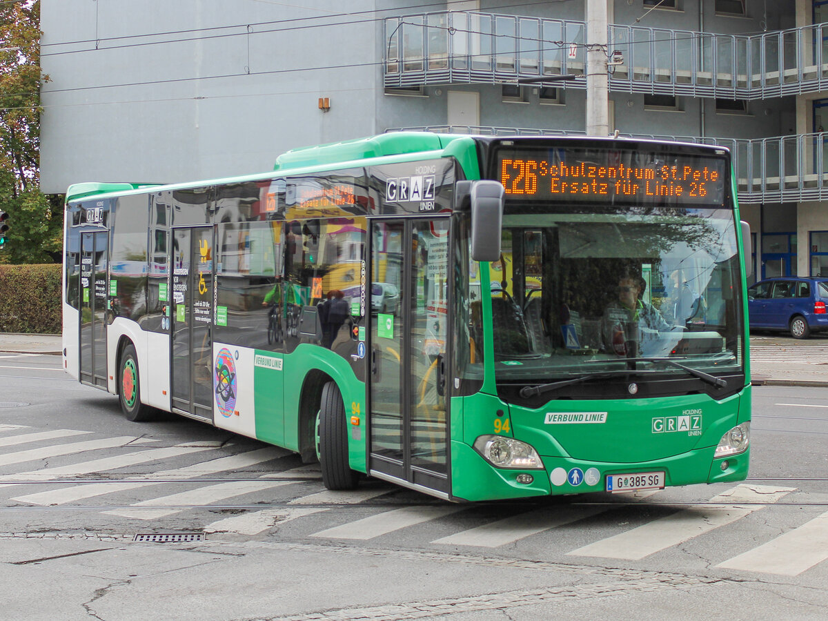 Graz. Am 18.10.2020 konnte ich Wagen 94 der Graz Linien als Linie E26 beim Schulzentrum St. Peter ablichten.