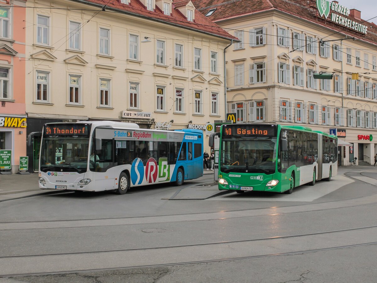 Graz. An diesem 23.05.2021 stehen Wagen 126 und 179 abfahrbereit am Jakominiplatz.