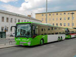Graz. Aus dem Grazer Stadtbild ist mittlerweile der Firmenname "Watzke" weitestgehend verschwunden. Sogar die ältesten Busse des zweitgrößten Stadtbusunternehmens in Graz, tragen den neuen Schriftzug "Dr. Richard". Hier zu sehen ist ein Iveco Crossway mit dem neuen Logo, am regnerischen 28.05.2022 am Grazer Jakominiplatz.