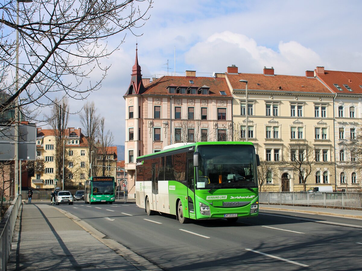 Graz. Der Dr. Richard W5340 war am 03.03.2023 auf der Linie 671 von Graz nach Thalerhof unterwegs, hier auf der Augartenbrücke.