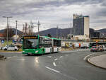 Graz. Wagen 9 von Grünerbus ist hier am 04.02.2024 als Linie 75 beim Murpark zu sehen.