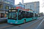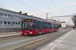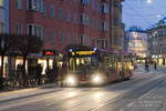 Innsbruck: Bus Nr. 435 der Linie O kurz vor Umstellung auf Straßenbahn in der Layrstraße. Bis zur Liniennetz-Umstellung wurde Allerheiligen und eine Kurzführung bis zum Fürstenweg von der Linie O, die Äste nach Technik-West und zur Peerhofsiedlung von der Straßenbahnlinie 3 bedient. Aufgenommen 24.1.2019.