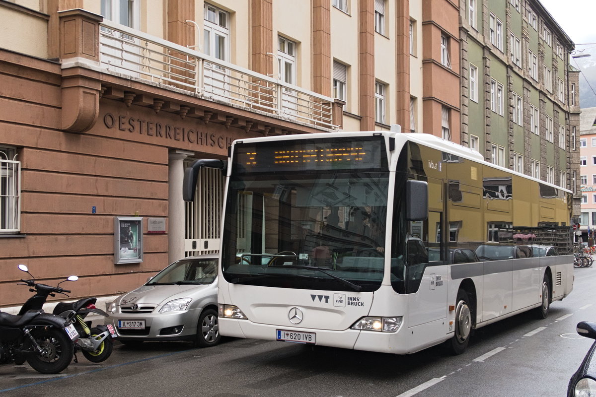Mercedes-Benz Citaro 2. Generation der Innsbrucker Verkehrsbetriebe (Bus Nr. 438) als Schienenersatzverkehr für die Straßenbahnlinie 1 in Innsbruck, Claudiastraße. Aufgenommen 11.7.2025. stbtram