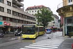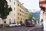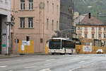Innsbruck: Schienenersatzverkehr für die Straßenbahnlinie 3 (Bus Nr. 620 der IVB) ist wegen umfangreicher Bauarbeiten am Hauptbahnhof über die Adamgasse umgeleitet. Aufgenommen 12.5.2019.
