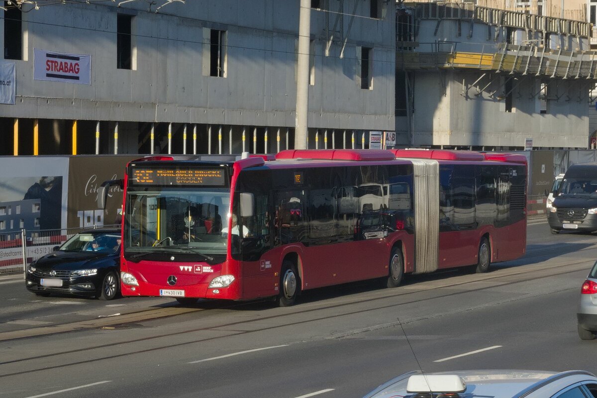 Innsbruck: Schienenersatzverkehr für die Straßenbahnlinie 1 (Linie 1SE), Bus Nr. 430 der Innsbrucker Verkehrsbetriebe bei der Haltestelle Westbahnhof. Aufgenommen 21.3.2022.