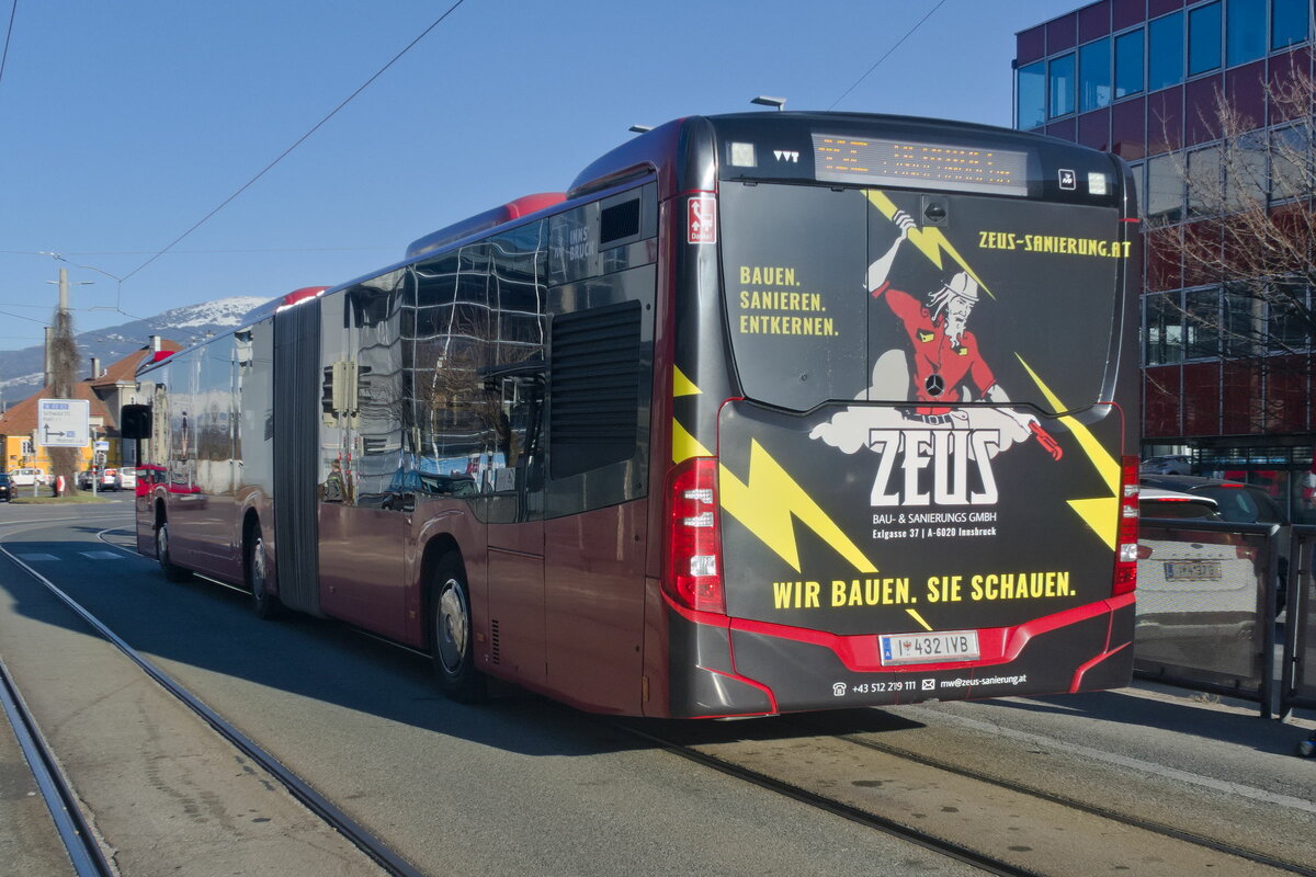 Mercedes-Benz Citaro 2. Generation der Innsbrucker Verkehrsbetriebe (Bus Nr. 438) als Schienenersatzverkehr für die Straßenbahnlinie 1 an der Hst. Messe/Zeughaus in Innsbruck. Aufgenommen 11.7.2025.