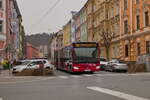 Innsbruck: Bus Nr. 440 der Innsbrucker Verkehrsbetriebe ist als Linie F über die Kranebitter Allee umgeleitet. Aufgenommen 7.4.2022.