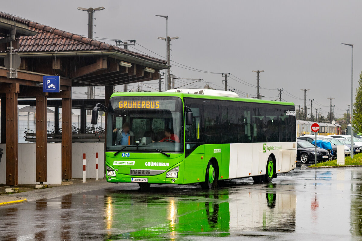 Bruck an der Mur. Wagen 67 der Mürztaler Verkehrsgesellschaft ist hier am 18.09.2023 als Linie 175 bei der Haltestelle Mürzbrücke zu sehen.