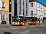 Bruck an der Mur. Ein Kutsenits SolarCity XL der Mürztaler Verkehrsgesellschaft, erreich hier am 27.03.2025 den Koloman-Wallisch-Platz.