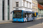Bruck an der Mur. Wagen 42 der Mürztaler Verkehrsgesellschaft, ist hier am 27.03.2025 als Linie 1 am Koloman-Wallisch-Platz zu sehen.