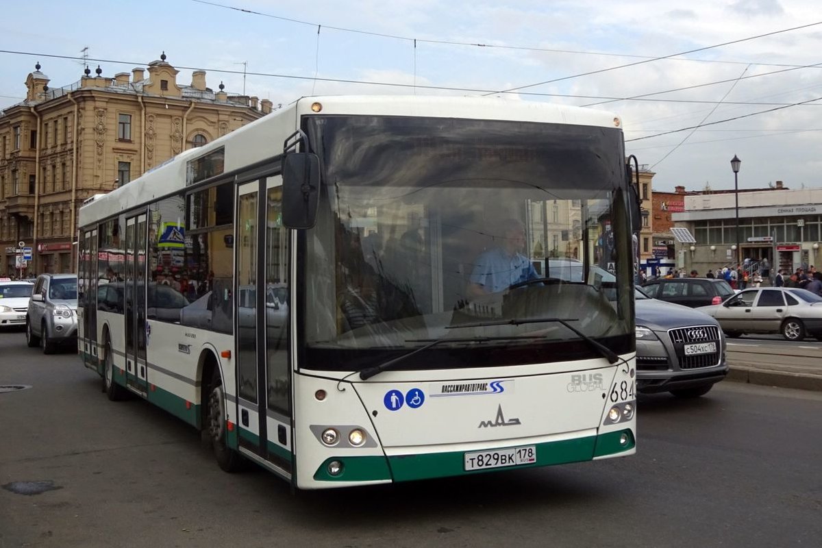 Russland / Bus Sankt Petersburg / Bus Saint Petersburg: MAZ-203 (Minski Awtomobilny Sawod), aufgenommen im Juli 2015 im Stadtgebiet von St. Petersburg.