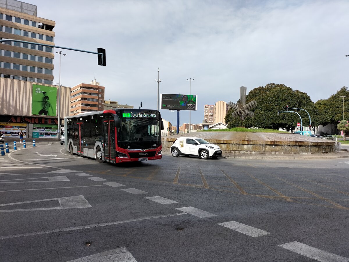 Neuer MAN Lion's City 19C, Baujahr 2023, Wagen 841, Firma Masatusa, im Einsatz auf der Linie 3 in Alicante an der Glorieta de la Estrella am 31.10.2023.