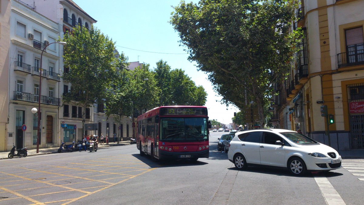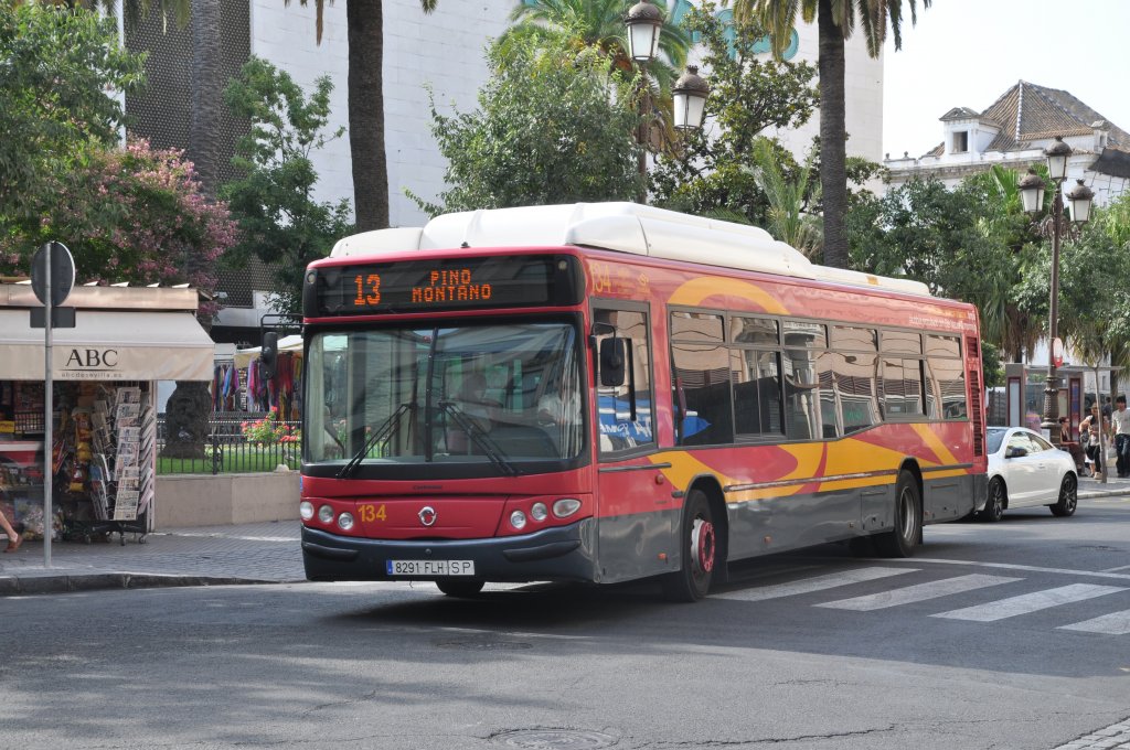 TUSSAM, Sevilla. Irisbus/Castrosua CS40 City (Nr.134) in Sevilla, Plaza del Duque.