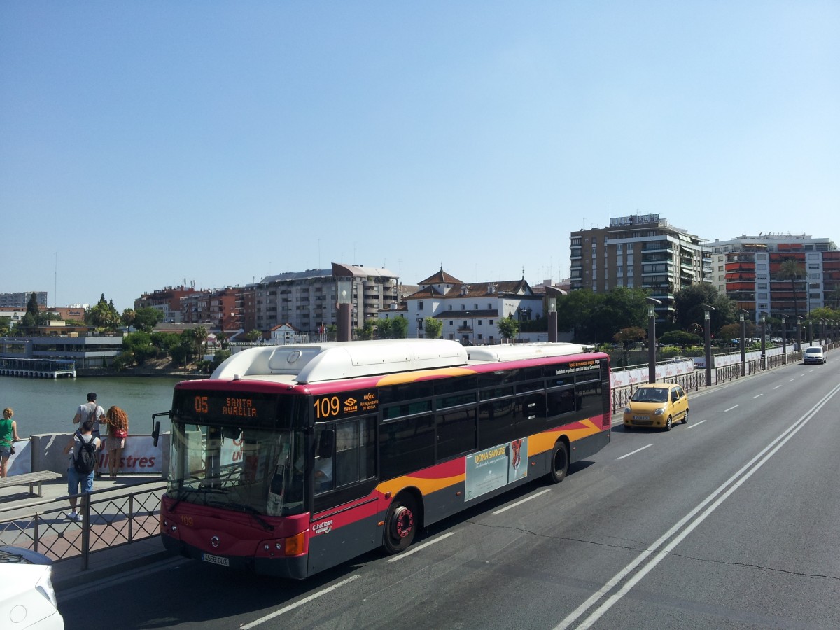 TUSSAM-Irisbus Castrosua unterwegs in Sevilla am 4.7.14.