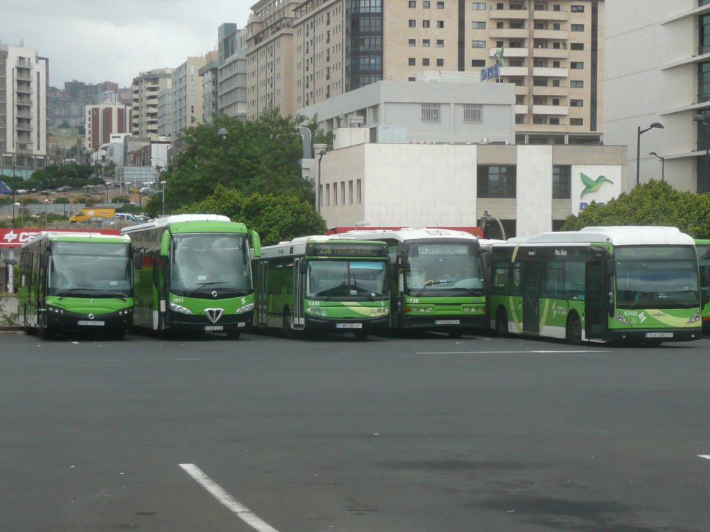 12.10.10,abgestellte TITSA-Busse am Busbahnhof Santa Cruz de Tenerife.