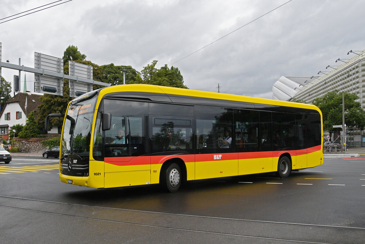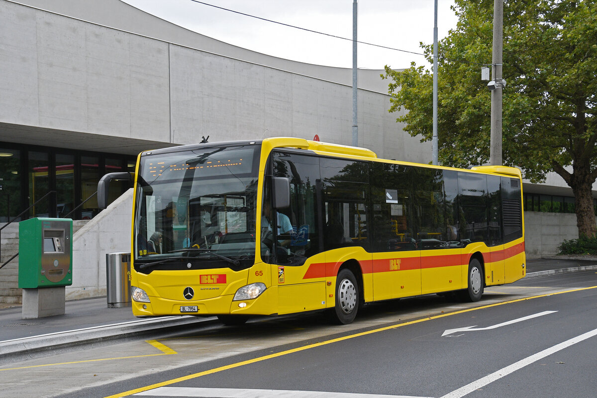 Mercedes Citaro der BLT mit der Betriebsnummer 67 auf der Linie 47 wartet an der Endstation beim Bahnhof Muttenz.