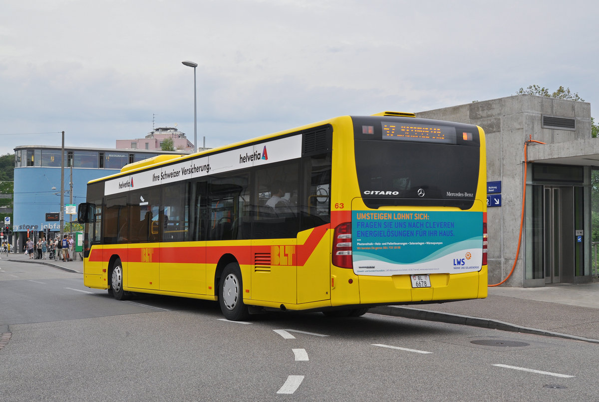 Mercedes Citaro 63 der BLT, auf der Linie 47, fährt zur Haltestelle Dreispitz. Die Aufnahme stammt vom 04.08.2015.