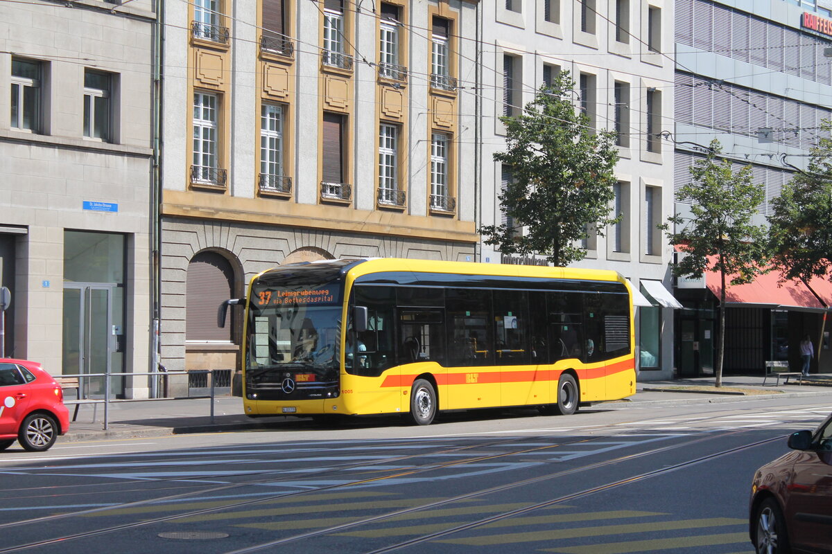 BLT Nr. 1005 (Mercedes eCitaro O530) am 13.9.2021 in Basel, Aeschenplatz.