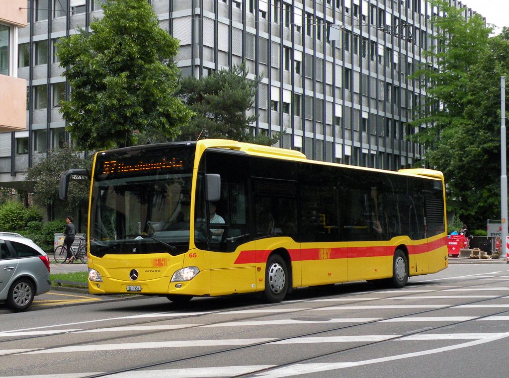 Fabrikneuer Mercedes Citaro mit der Betriebsnummer 65 auf der Linie 37 kurz vor der Endhaltestelle am Aeschenplatz. Die Aufnahme stammt vom 14.06.2013.