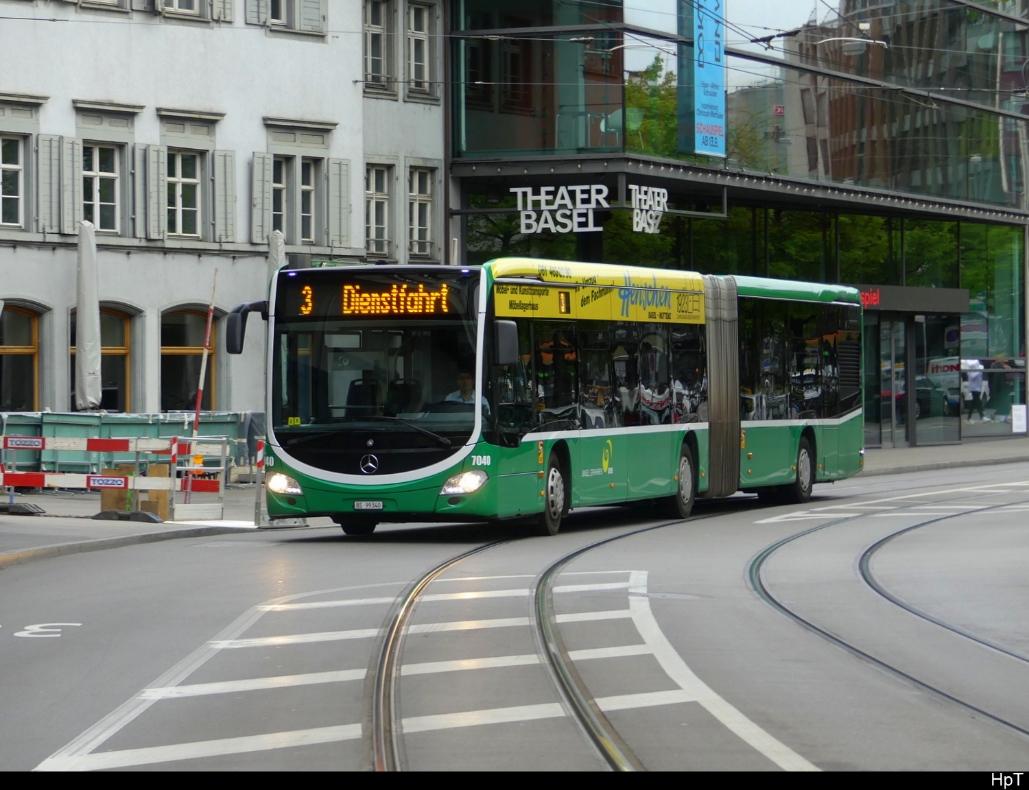 Der Renault Master T 35 (ex BVB 857) wird nach der Ausmusterung bei den Basler Verkehrsbetrieben bei der Polizei Basel-Stadt weiter als Infomobil genutzt. Die Aufnahme stammt vom 04.12.2013.