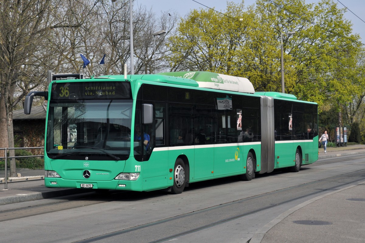 Mercedes Citaro mit der Betriebsnummer 711 auf der Linie 36 am ZOO Dorenbach. Die Aufnahme stammt vom 01.04.2014.