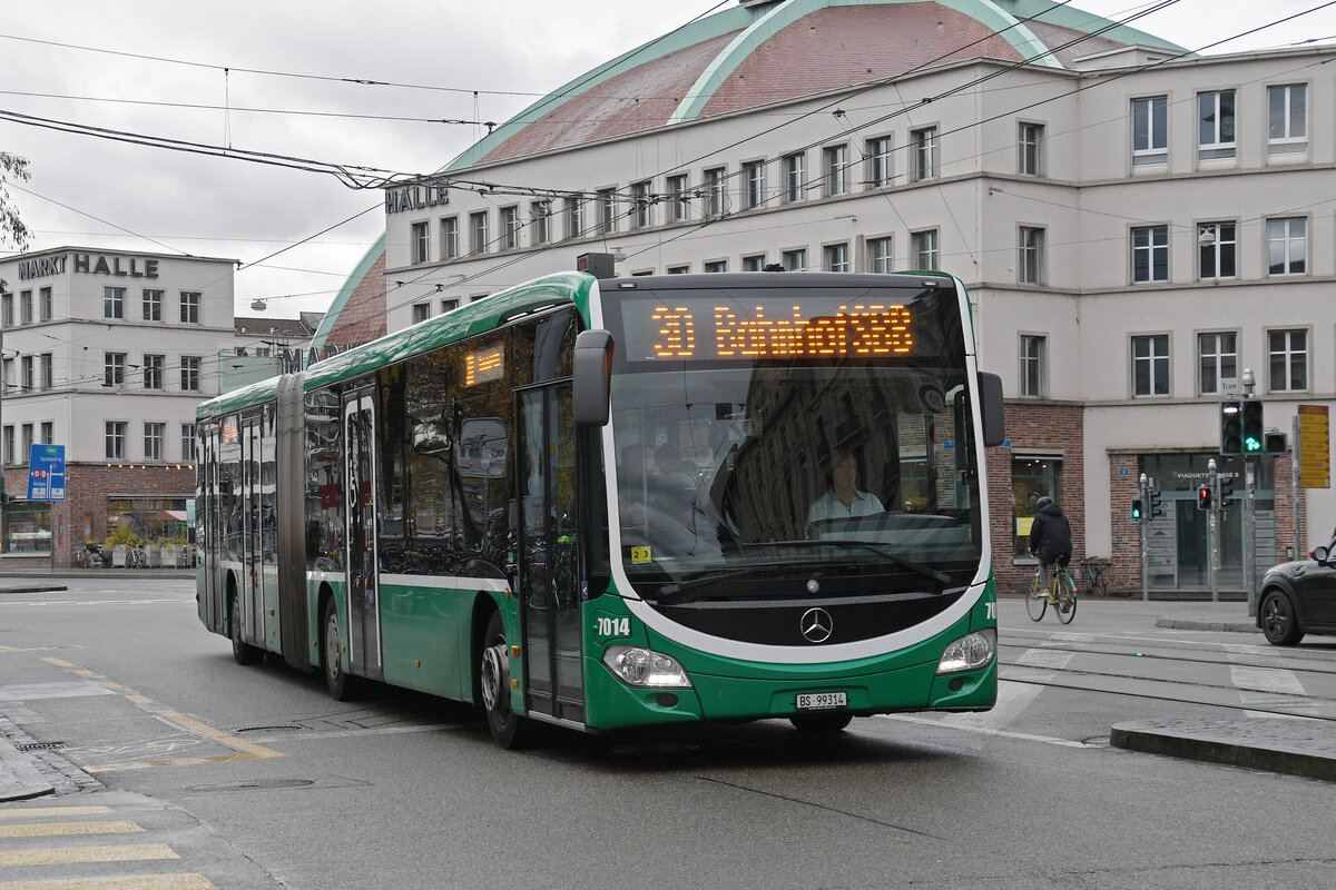 MAN Bus 825 auf der Line 11 an der provisorischen Haltestelle Bahnhof St. Johann. Die Aufnahme stammt vom 02.09.2014.