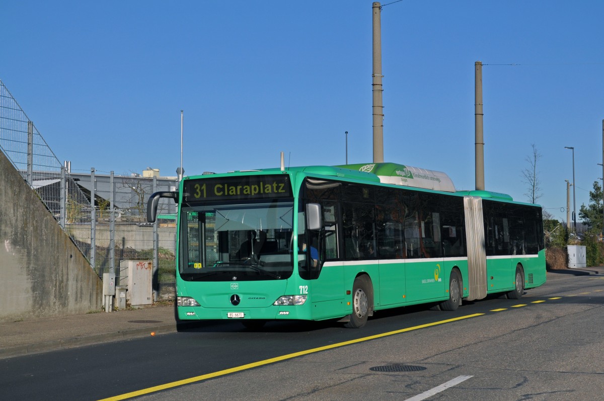 Mercedes Citaro 712 auf der Linie 31 fährt zur Haltestelle Tinguely Museum.