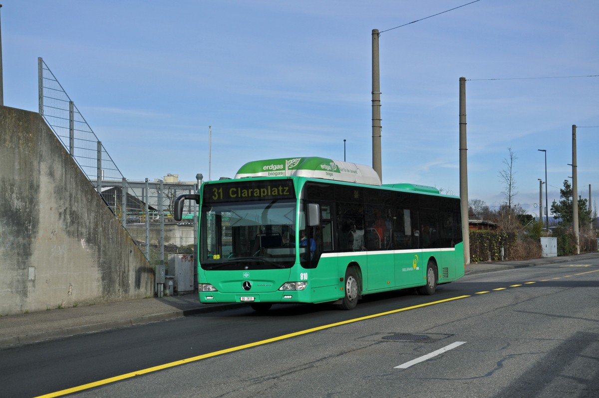 Mercedes Citaro 810 auf der Linie 31 fährt zur Haltestelle Tinguely Museum. Die Aufnahme stammt vom 18.01.2015.