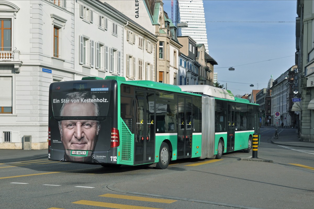 Mercedes Citaro 712 auf der Linie 31 verlässt die Haltestelle Wettsteinplatz Richtung Rosengartenweg. Die Aufnahme stammt vom 08.03.2015.