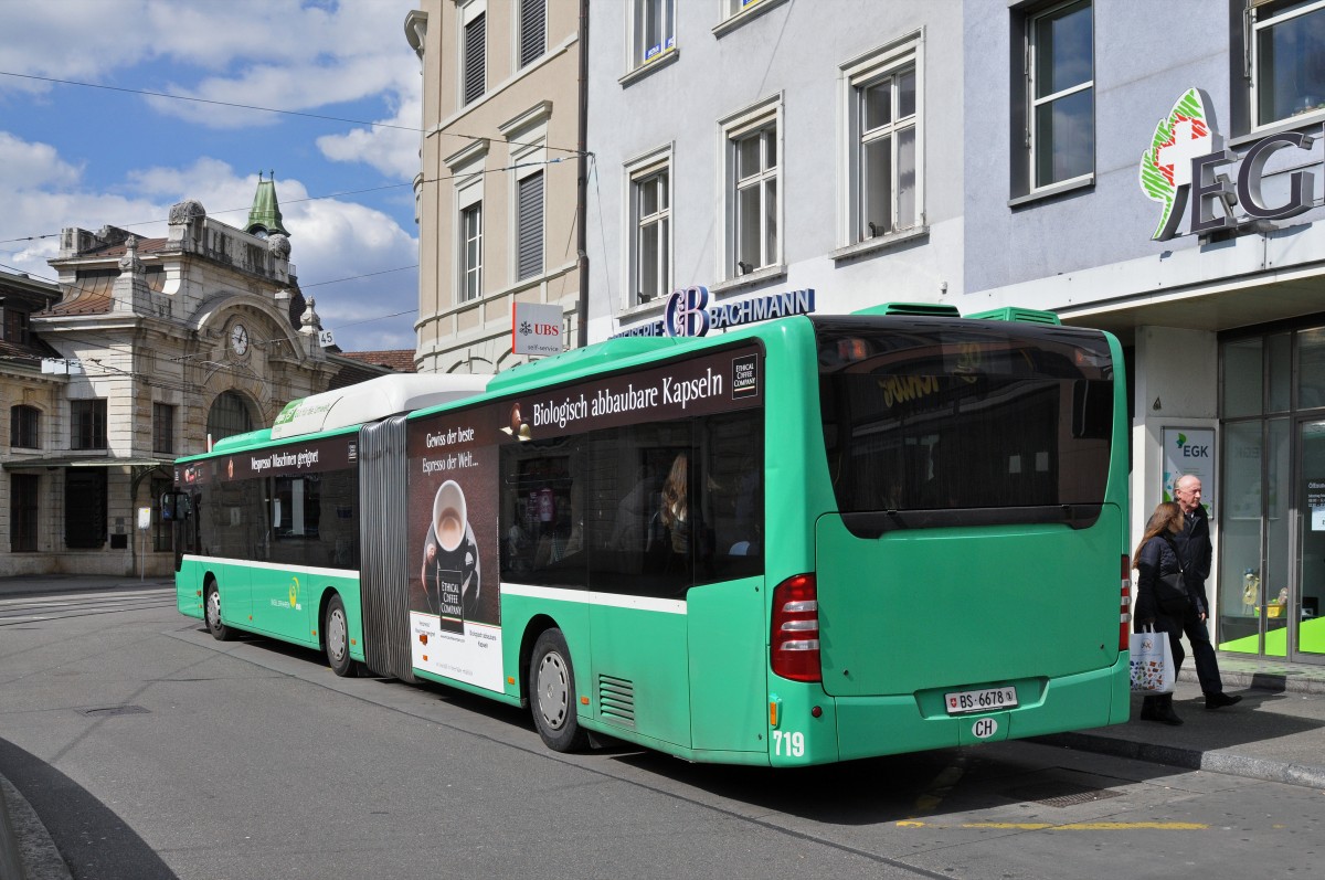 Mercedes Citaro 719 auf der Linie 30 wartet am Bahnhof SBB aus seine Abfahrtszeit. Die Aufnahme stammt vom 05.04.2015.