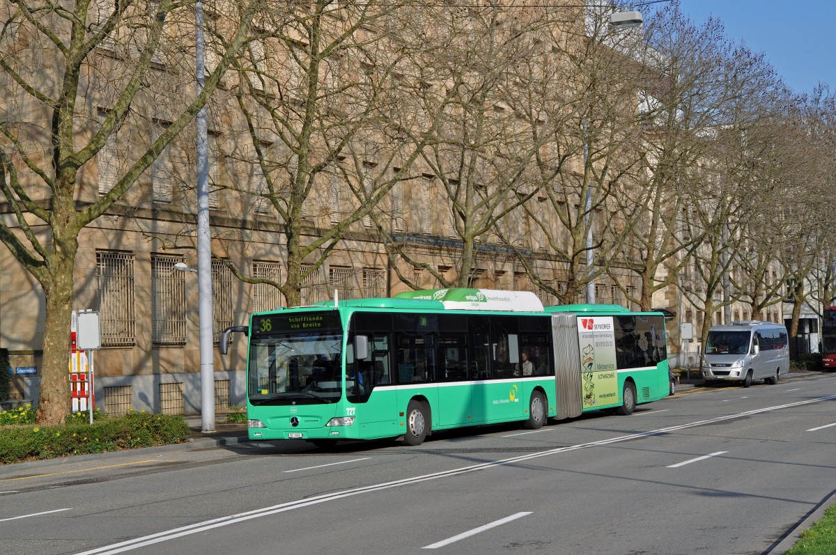 Mercedes Citaro 727 auf der Linie 36 fährt zur Haltestelle am Badischen Bahnhof. Die Aufnahme stammt vom 05.04.2015.