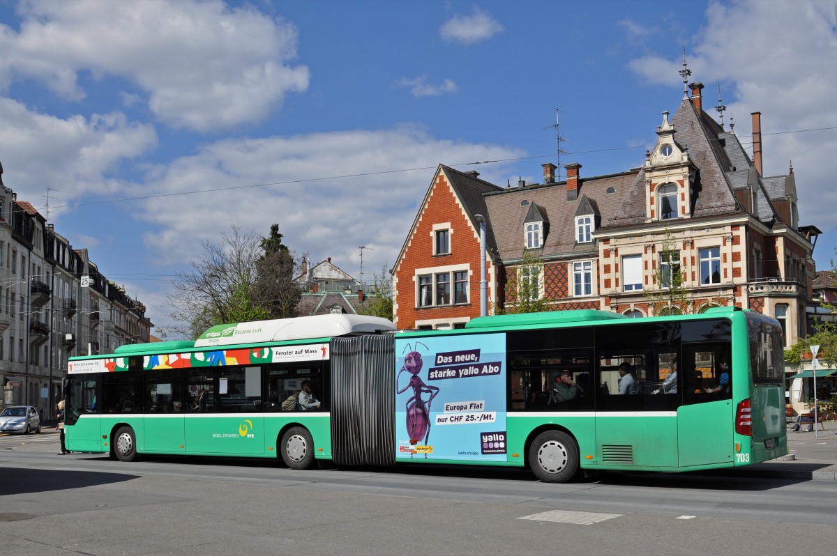 Mercedes Citaro 703 auf der Linie 34 bedient die Haltestelle Wettsteinplatz. Die Aufnahme stammt vom 18.04.2015.