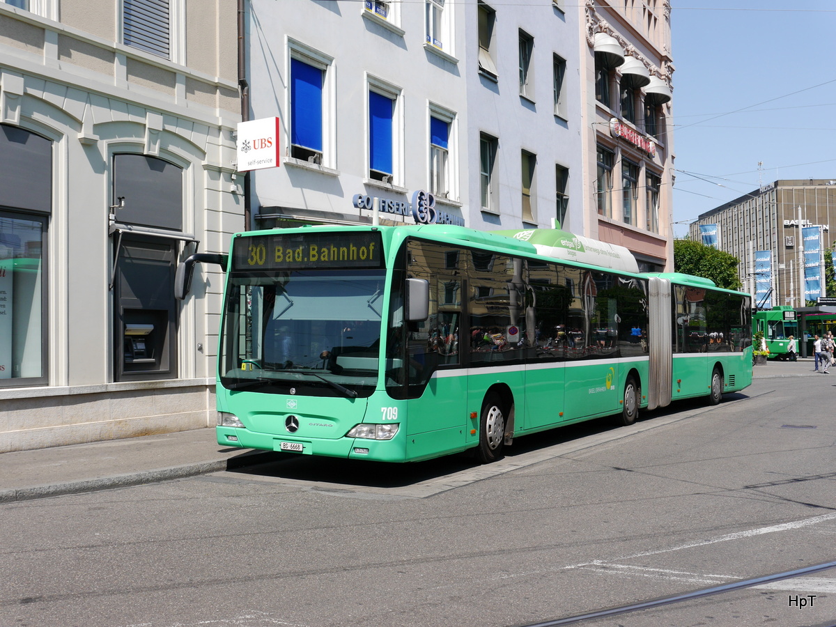 BVB - Mercedes Citaro Nr.709 BS 6668 unterwegs auf der Linie 30 vor dem Bahnhof Basel SBB am 11.07.2015