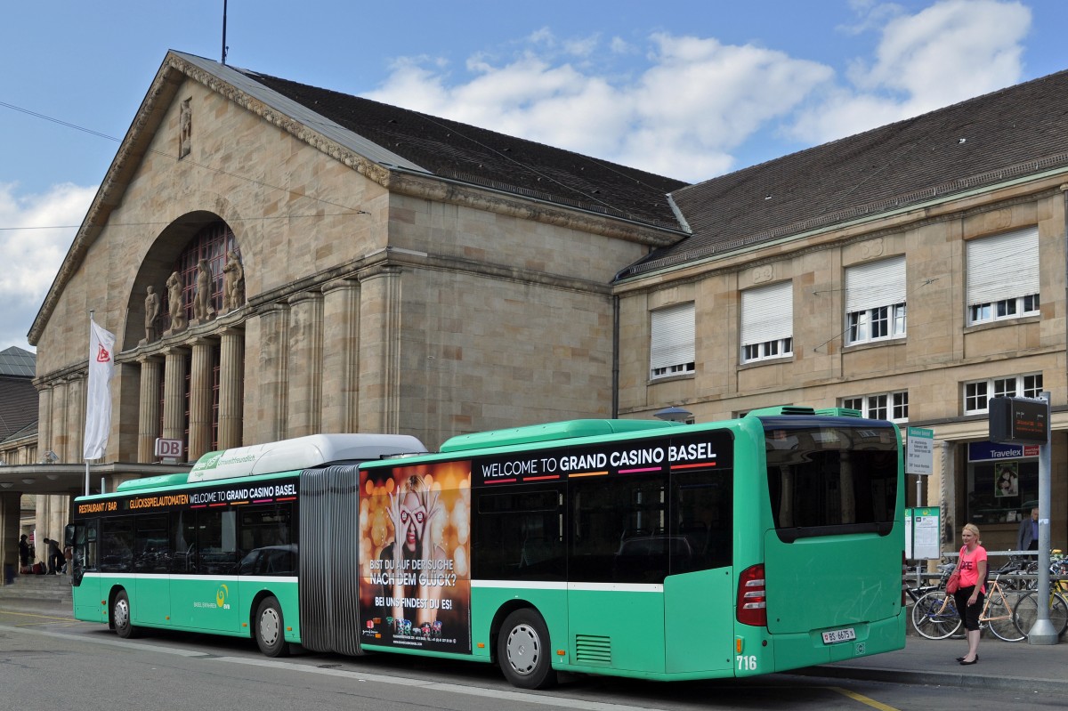 Mercedes Citaro 716 auf der Linie 30 wartet an der Endstation beim Badischen Bahnhof. Die Aufnahme stammt vom 09.07.2015.