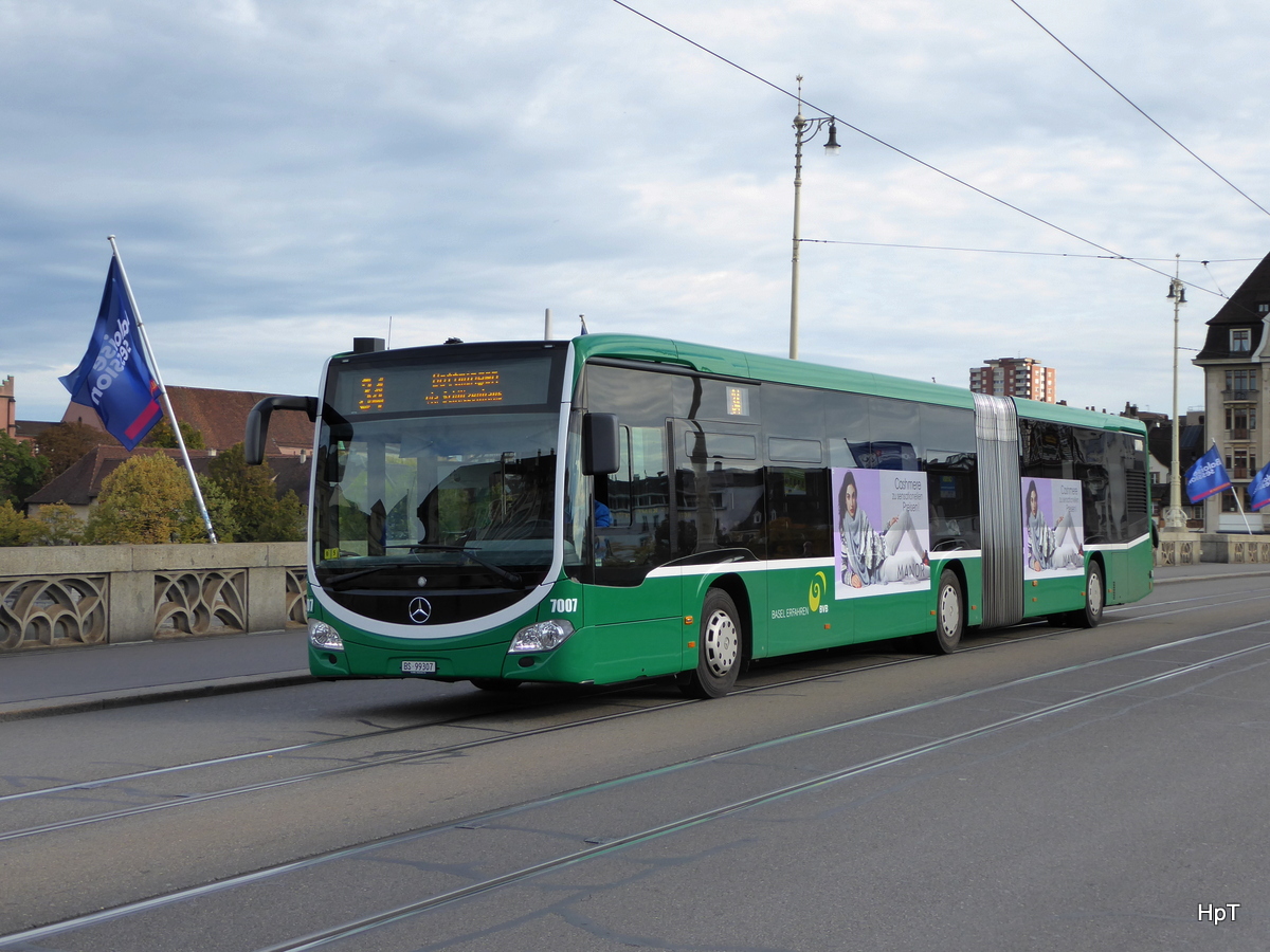 BVB - Mercedes Citaro Nr.7007  BS 99307 unterwegs auf der Linie 34 in der Stadt Basel am 06.10.2015