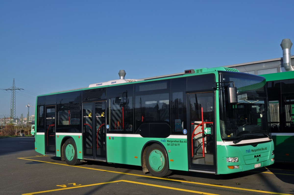 MAN Lions City der Margarethen Bus AG steht auf dem Hof der Garage Rankstrasse.