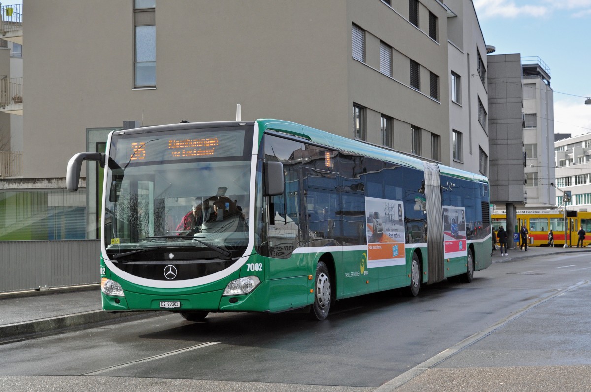 Mercedes Citaro 7002 auf der Linie 36 fährt vom Dreispitz zur Haltestelle St. Jakob. Die Aufnahme stammt vom 01.02.2016.