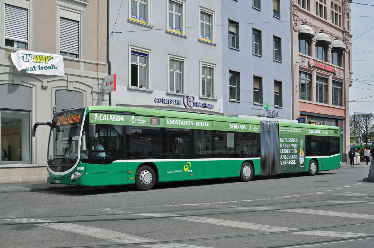 Mercedes Citaro 7038, auf der Linie 30, wartet an der Endstation am Bahnhof SBB. Die Aufnahme stammt vom 30.04.2016.