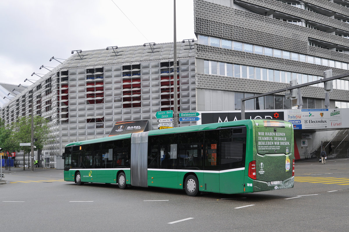 Mercedes Citaro 7018, auf der Linie 36, verlässt die Haltestelle St. Jakob. Die Aufnahme stammt vom 14.05.2016.