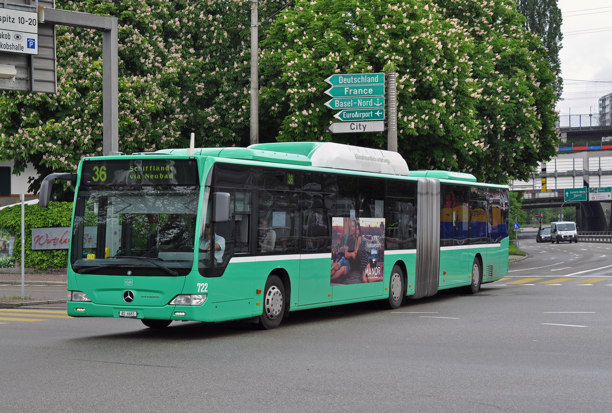 Mercedes Citaro 722, auf der Linie 36, fährt zur Haltestelle St. Jakob. Die Aufnahme stammt vom 14.05.2016.