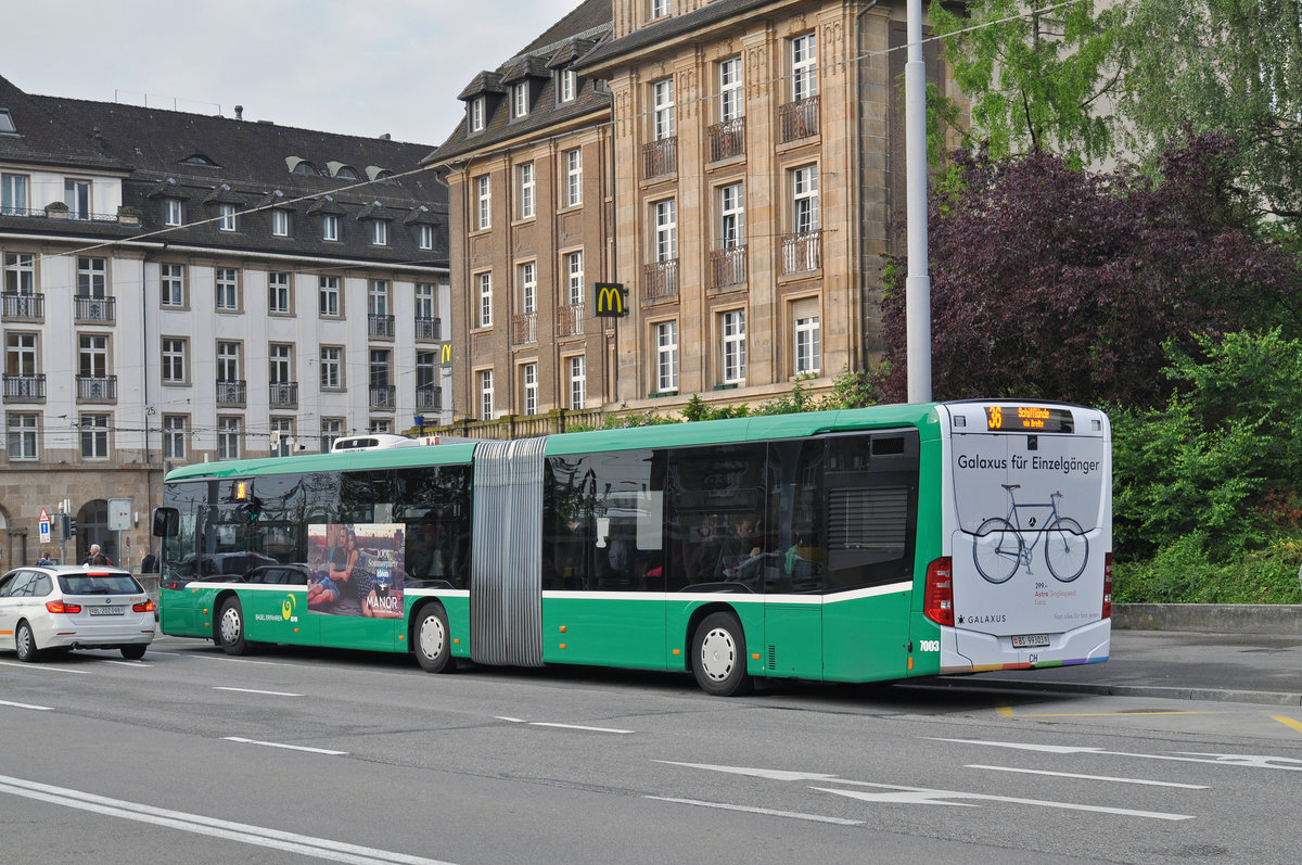 Mercedes Citaro 7003, auf der Linie 36, bedient die Haltestelle am Badischen Bahnhof.