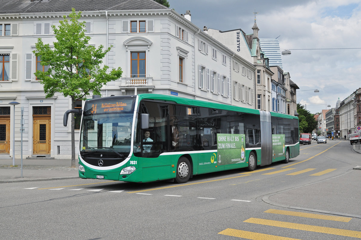 Mercedes Citaro 7031, auf der Linie 34, fährt zur Haltestelle am Wettsteinplatz. Die Aufnahme stammt vom 17.05.2016.