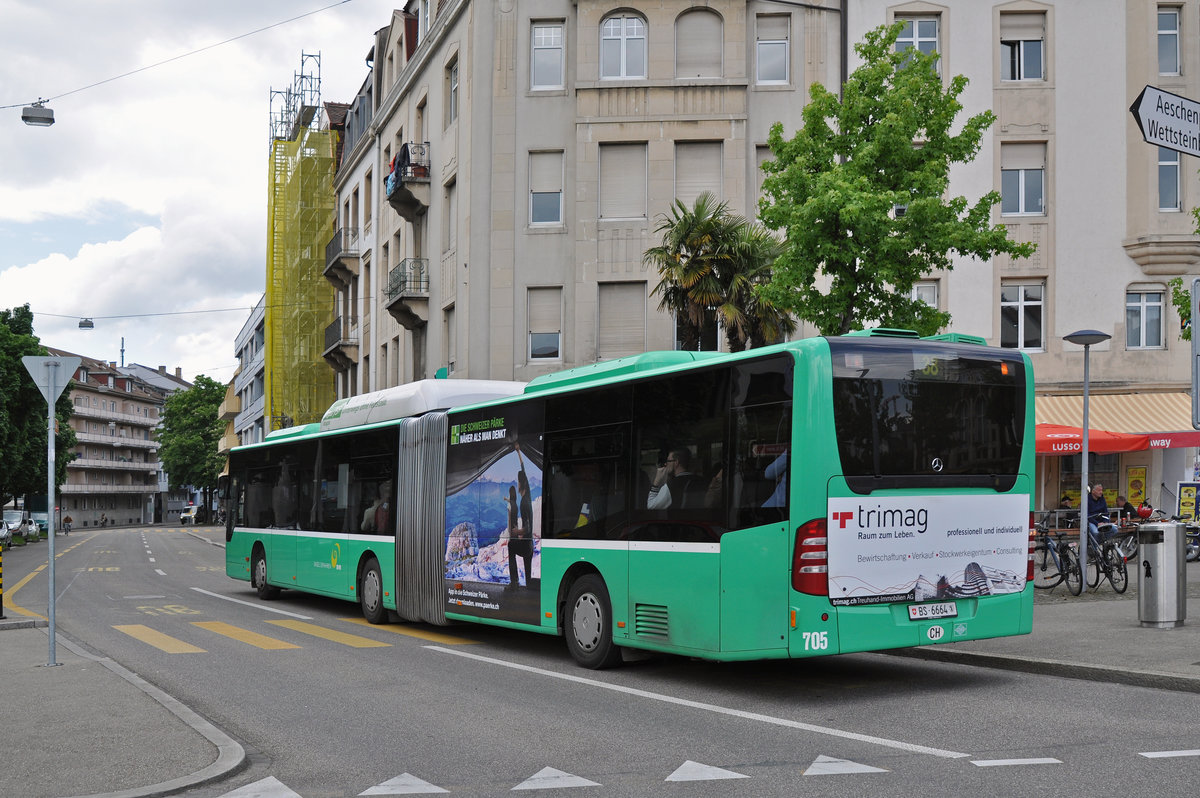 Mercedes Citaro 705, auf der Linie 38 verlässt die Haltestelle am Wettsteinplatz. Die Aufnahme stammt vom 17.05.2016.