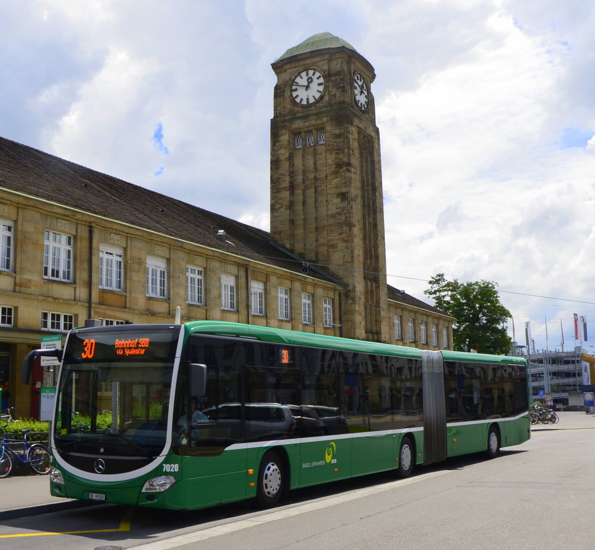 Mercedes Citaro 7020 auf der Linie 30 wartet am Bahnhof Badischer Bahnhof (05.06.2016).