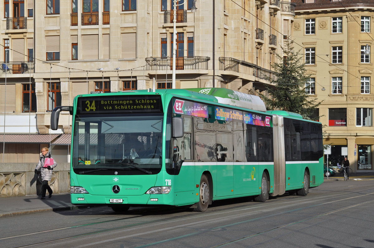 Mercedes Citaro 718, auf der Linie 34, überquert die Mittlere Rheinbrücke. Die Aufnahme stammt vom 08.12.2016.