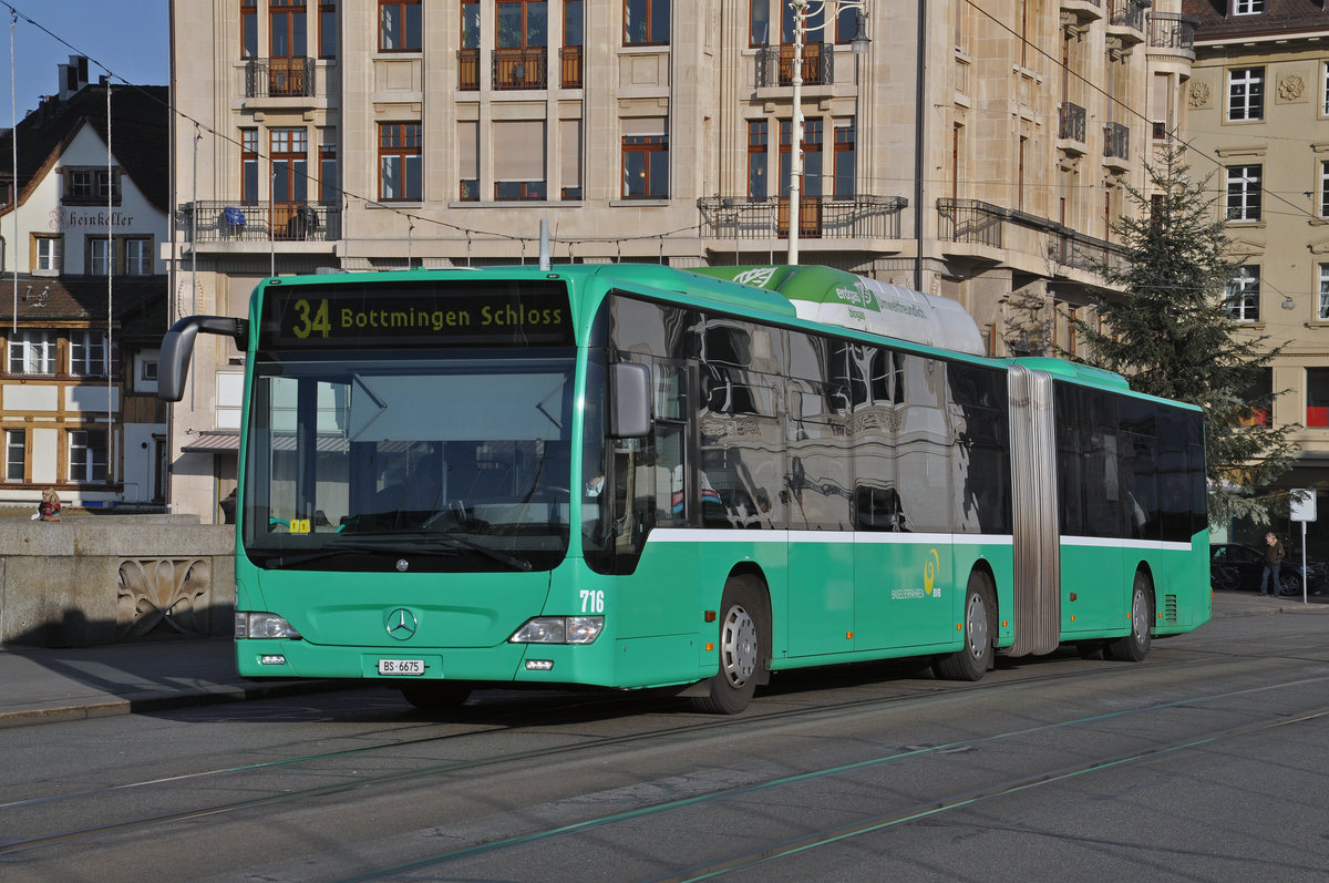Mercedes Citaro 716, auf der Linie 34, überquert die Mittlere Rheinbrücke. Die Aufnahme stammt vom 21.12.2016.