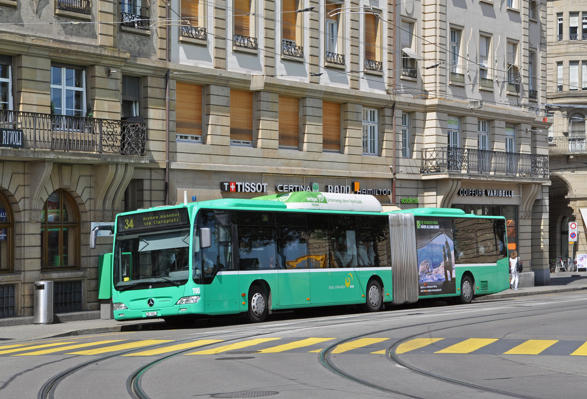 Mercedes Citaro 705, auf der Linie 34, bedient die Haltestelle an der Schifflände. Die Aufnahme stammt vom 27.06.2016.