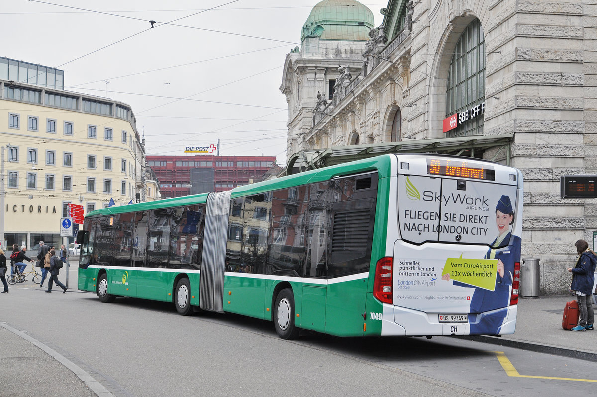 Mercedes Citaro 7049, auf der Linie 50, wartet an der Endstation beim Bahnhof SBB. Die Aufnahme stammt vom 24.03.2017.