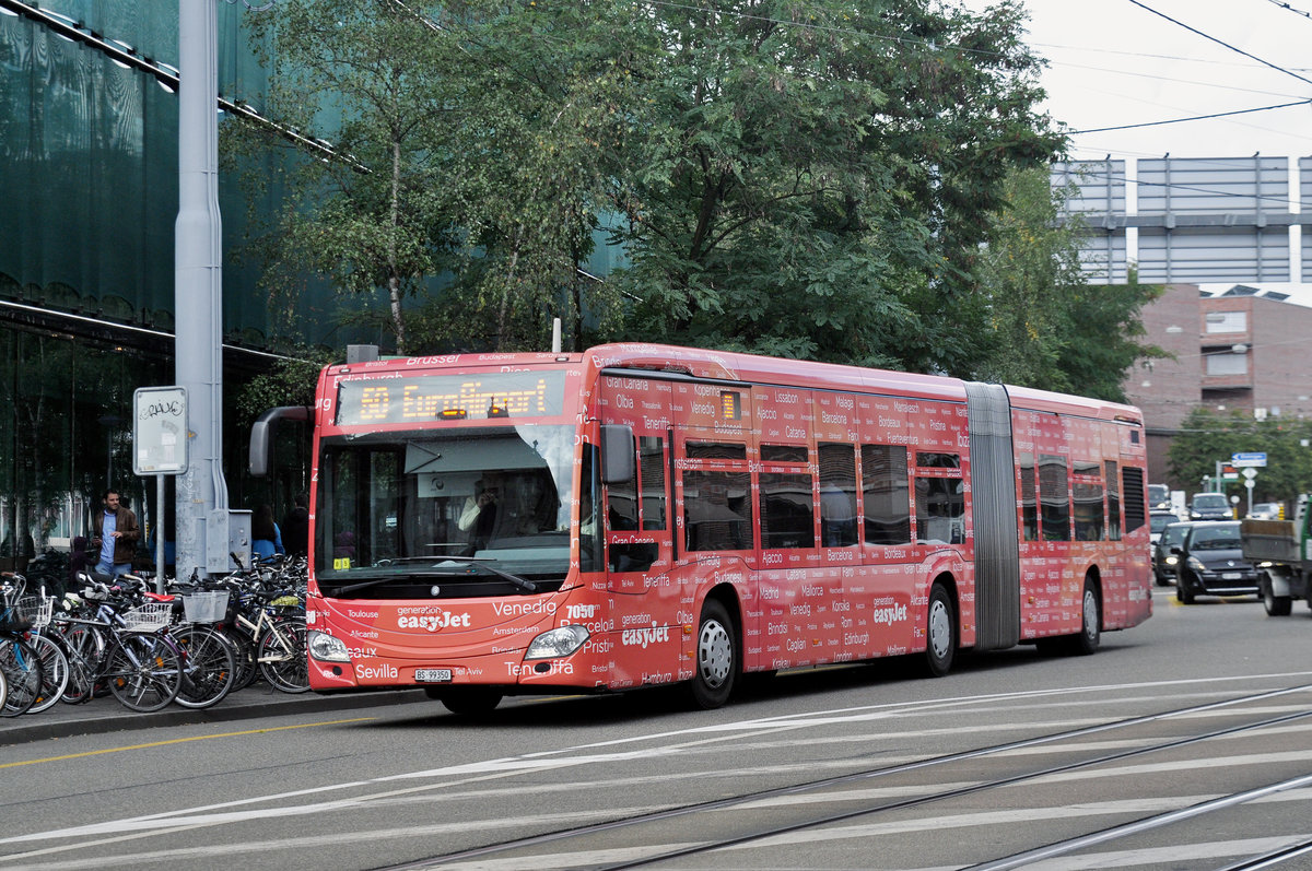 Mercedes Citaro 7050, mit der easy Jet Werbung, auf der Linie 50, fährt zur Endstation beim Bahnhof SBB. Die Aufnahme stammt vom 16.09.2017.